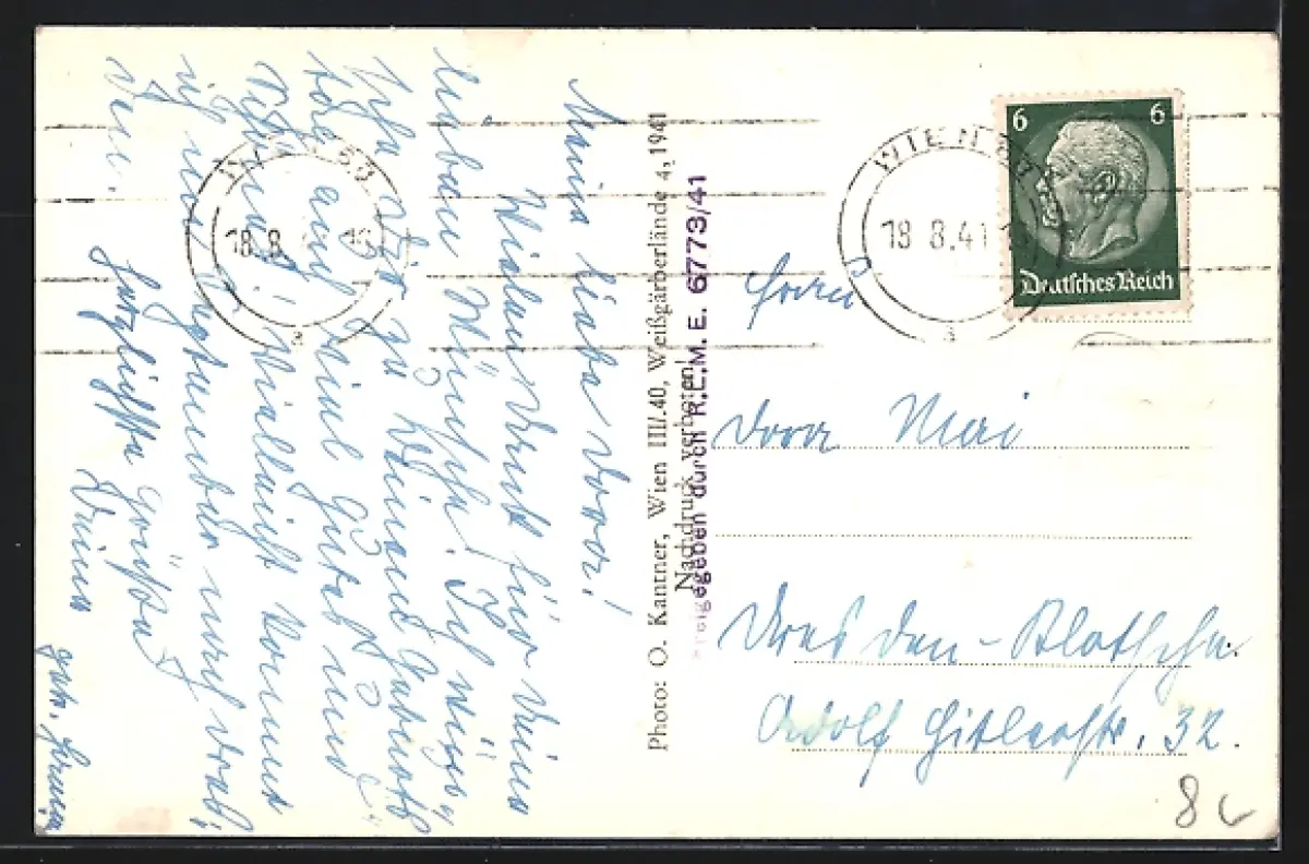 gelaufen 1941, Stempelspur, kl. Eckknick links oben, guter Zustand
