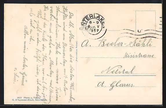 gelaufen 1937, Briefmarke entfernt, Stempelspur, guter Zustand