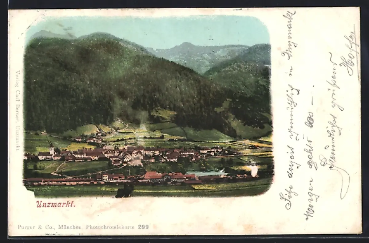 AK Unzmarkt, Ortsansicht aus der Vogelschau