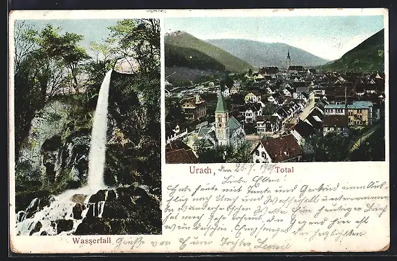 AK Urach, Teilansicht der Ortschaft, Wasserfall