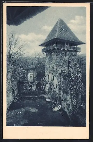 AK Uschhorod, Hof der Burgruine mit intaktem Turm