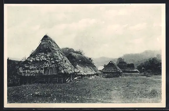 AK Uzok /Podk. Rus., Reihe kleiner Hütten