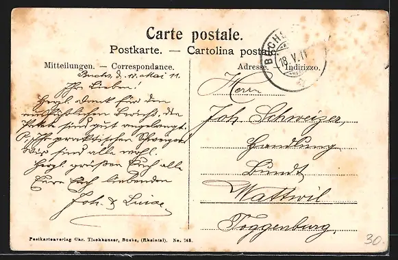 gelaufen 1911, Briefmarke entfernt, guter Zustand