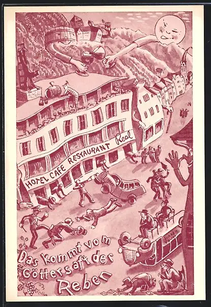 AK Vaduz, Hotel Restaurant Real aus der Sicht eines Betrunkenen