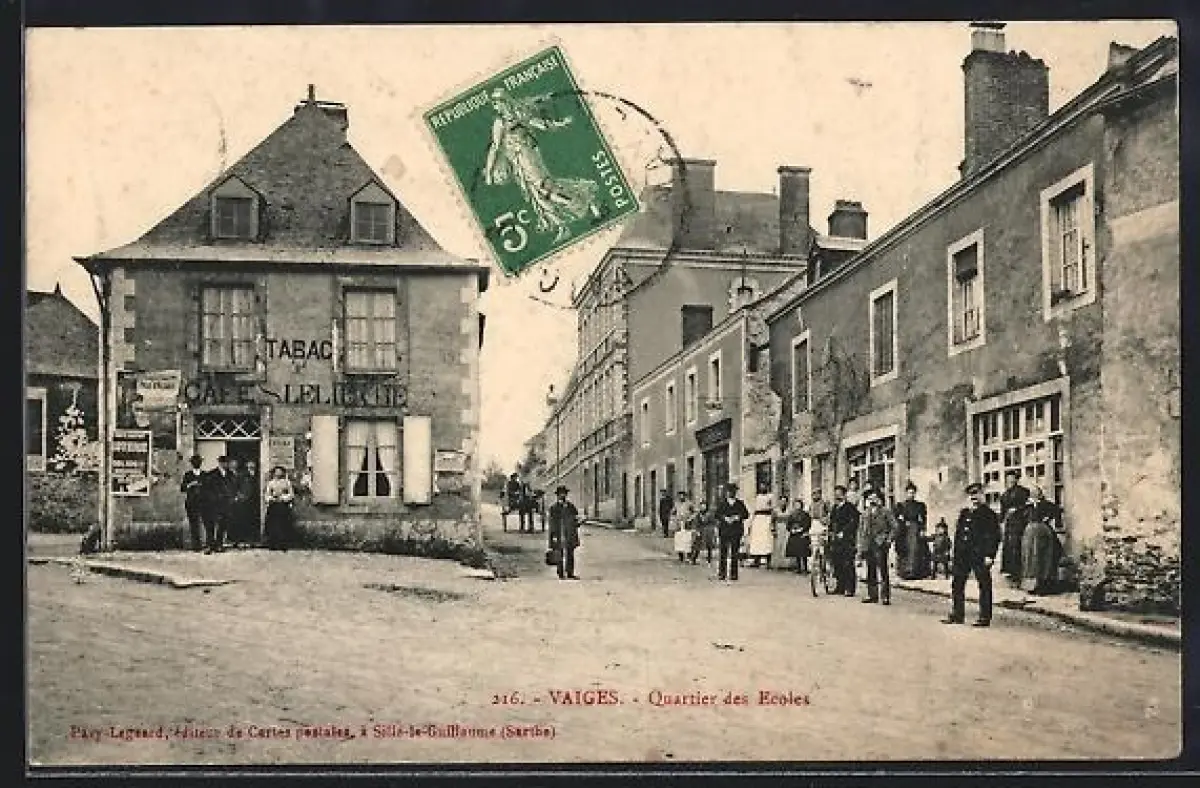AK Vaiges, Quartier des Ecoles avec Café
