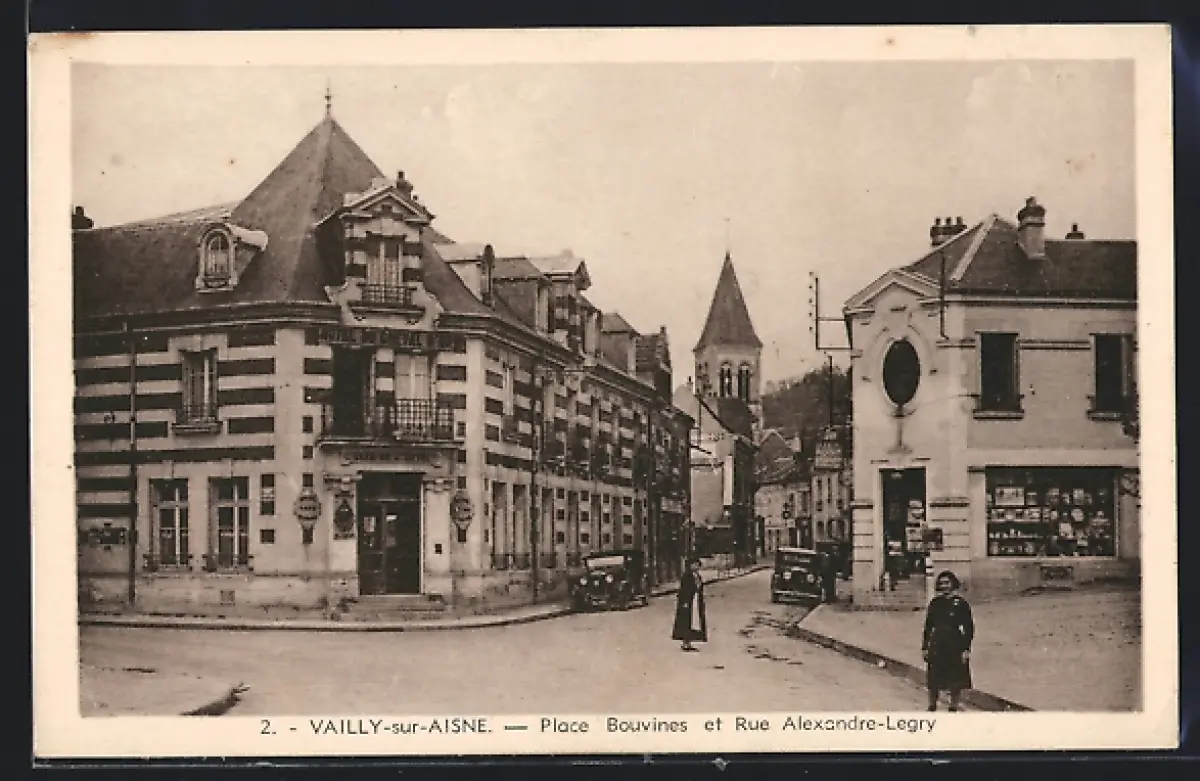 AK Vailly-sur-Aisne, Place Bouvines et Rue Alexandre-Legry