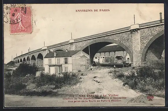 AK Val-Fleuri, Le Viaduc, chemin de fer électrique Paris-Versailles, vue de la Route de Paris à Meudon