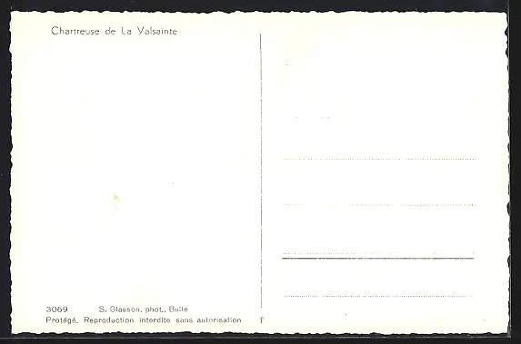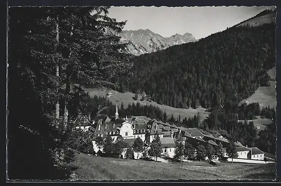 AK Val-de-Charmey, Chartreuse de Valsainte, Ortsansicht aus der Vogelschau mit Bergpanorama