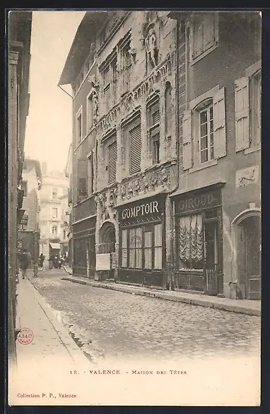 AK Valence, Maison des Têtes et rue commercante adjacente