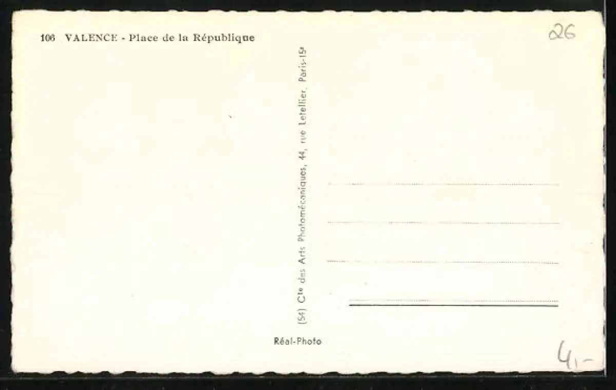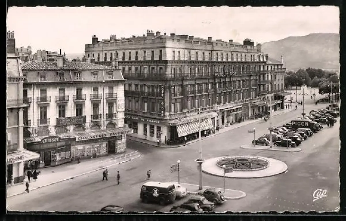 AK Valence, Place de la République avec voitures et bâtiments en arrière-plan