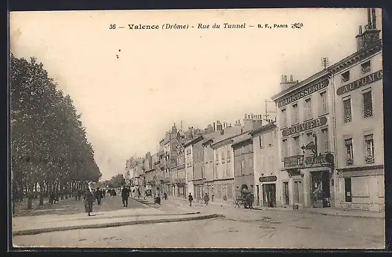 AK Valence, Rue du Tunnel avec bâtiments et passants