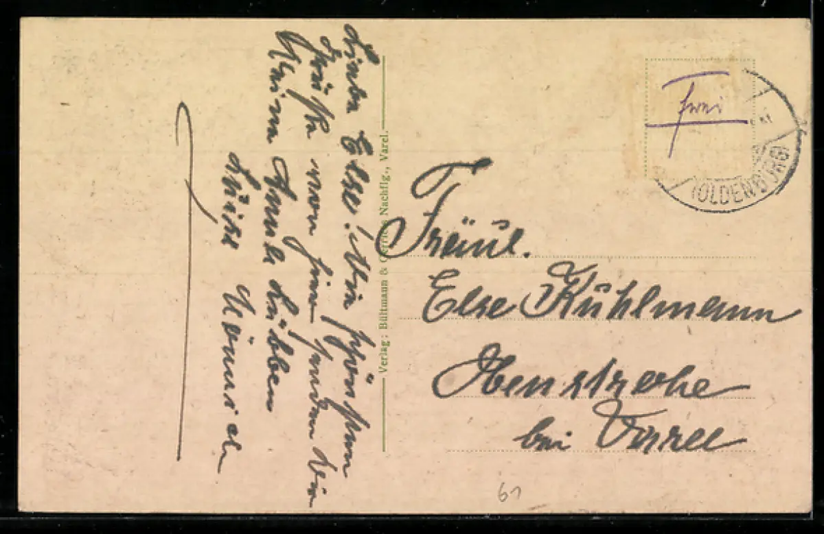 alte Ansichtskarte, gelaufen, Briefmarke entfernt, guter Zustand