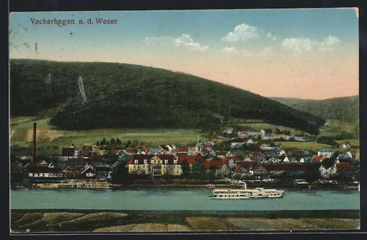 AK Veckerhagen a. d. Weser, Weserpartie mit Dampfschiff