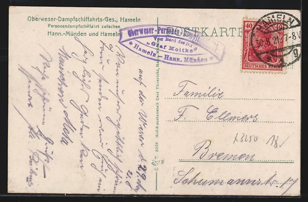 alte Ansichtskarte, gelaufen 1921, Stempelspur, guter Zustand