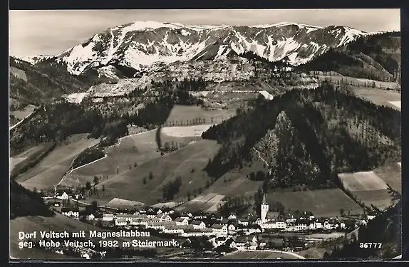 AK Veitsch, Ortsansicht mit Magnesitabbau geg. Hohe Veitsch