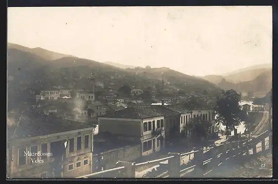 AK Veles, Bahngleise mit Strassenpartie