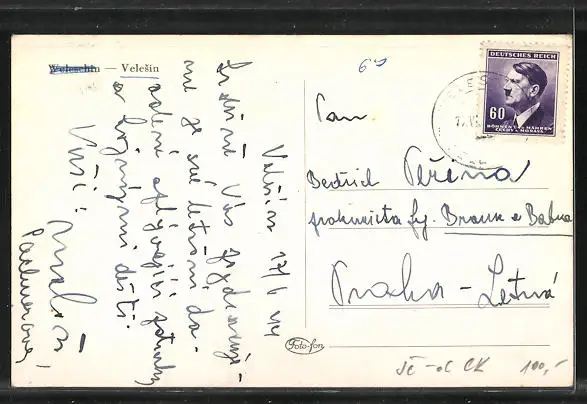 AK Velesín, Ortsansicht aus der Vogelschau