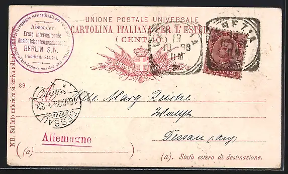 alte Ansichtskarte, gelaufen 1898, Stempelspur, guter Zustand