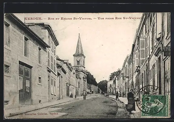AK Verdun, Rue et Eglise St-Victor, Vue prise Rue St-Victor