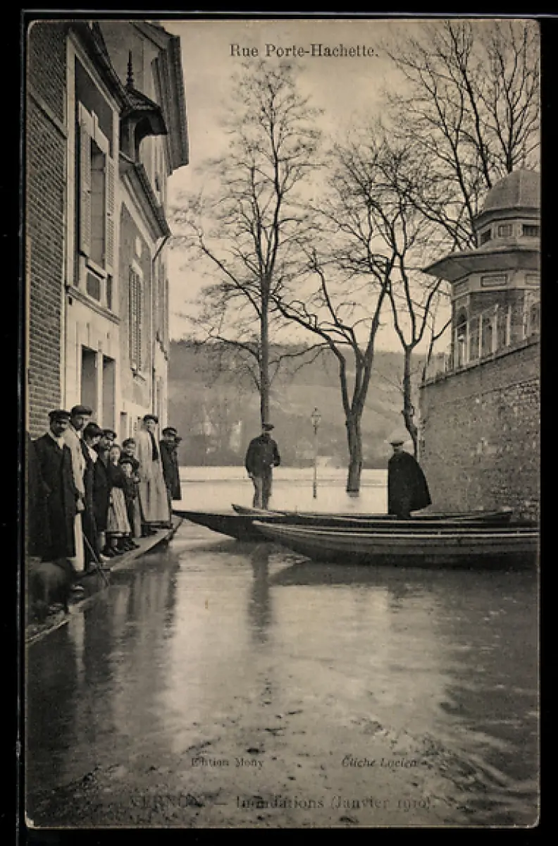 AK Vernon, Inondations 1910, Rue Porte-Hachette