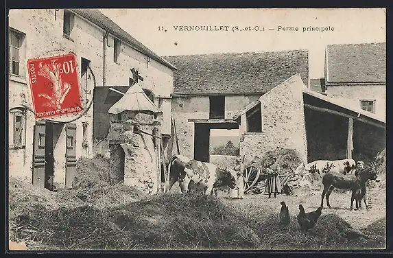 AK Vernouillet, Ferme principale avec animaux dans la cour