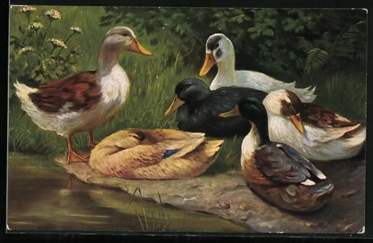 AK Verschiedene Enten am Rand eines Teiches