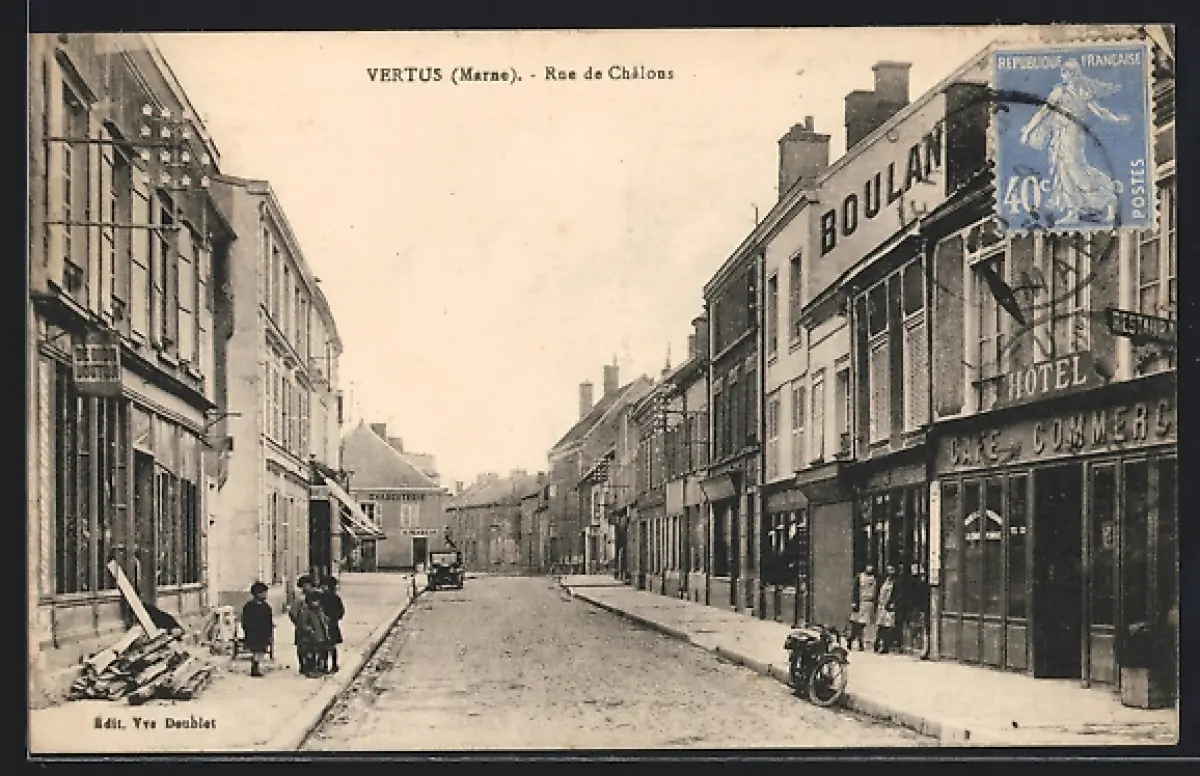 AK Vertus /Marne, Rue de Châlons, Strassenpartie