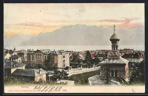 AK Vevey, Teilansicht mit Bergen
