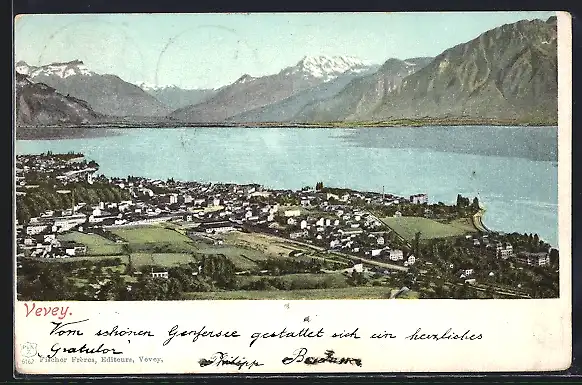 AK Vevey, Totalansicht aus der Vogelschau