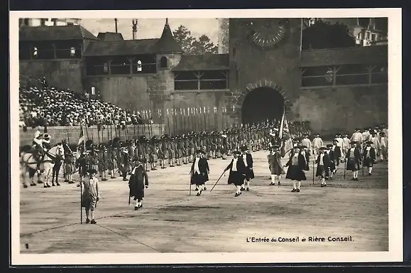 AK Vevey, la fête des vignerons 1927, l`entrée du conseil