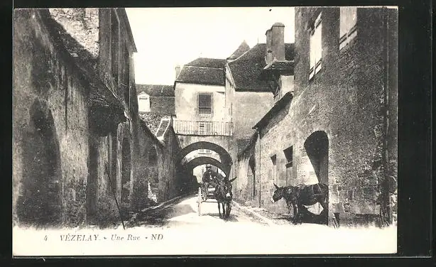 AK Vezelay, Une Rue, Eselskarren unterwegs