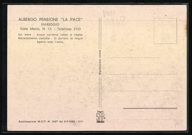 AK Viareggio, Albergo Pensione La Pace, Via Manin 15