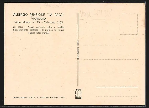 AK Viareggio, Albergo Pensione La Pace, Viale Manin 15