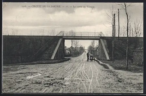 AK Vibraye, Circuit de la Sarthe 1906 /Autorennen, La Sortie de Vibraye