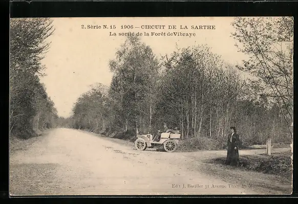 AK Vibraye, Circuit de la Sarthe 1906, La sortie de la Foret, Autorennen