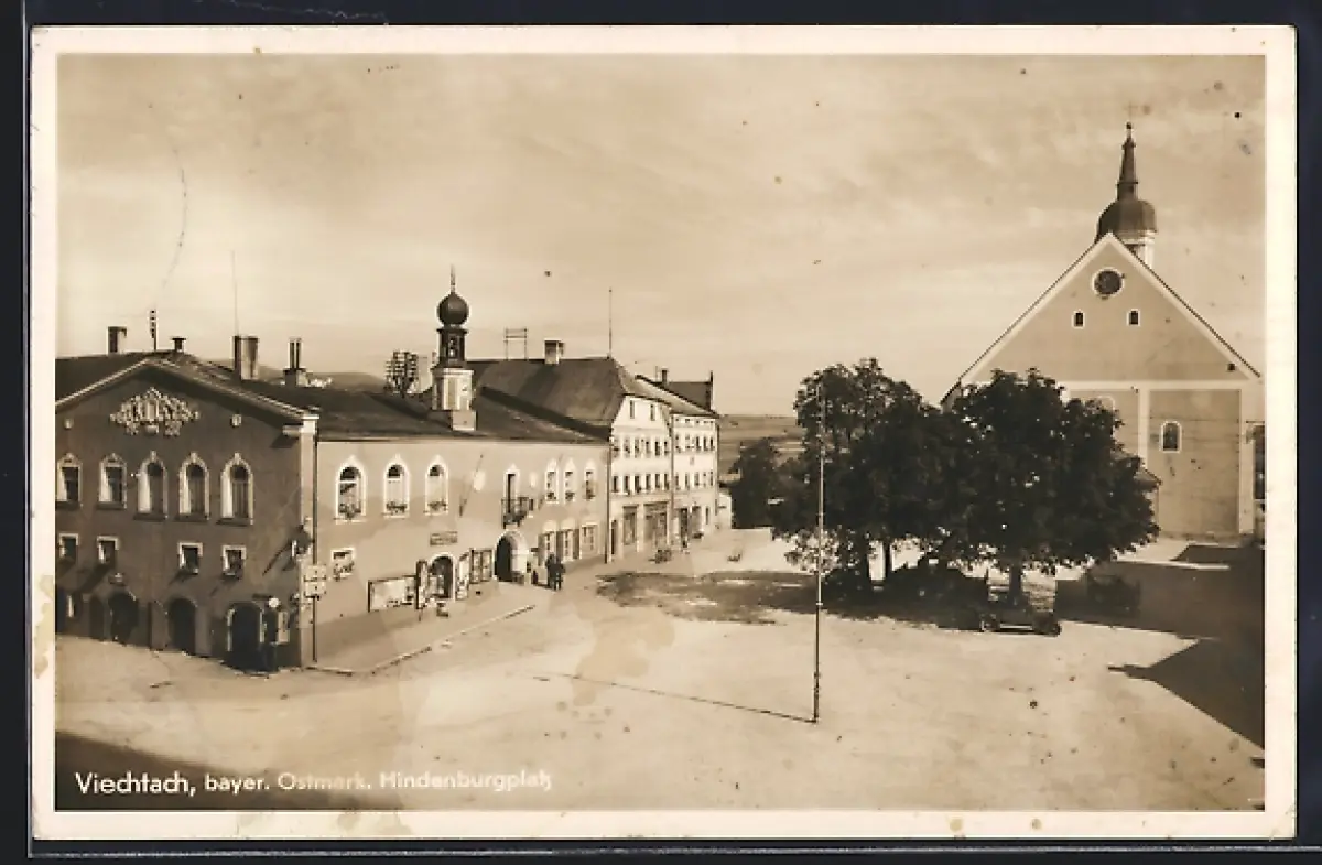 AK Viechtach /Bayer. Ostmark, Hindenburgplatz mit Kirche