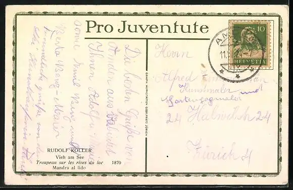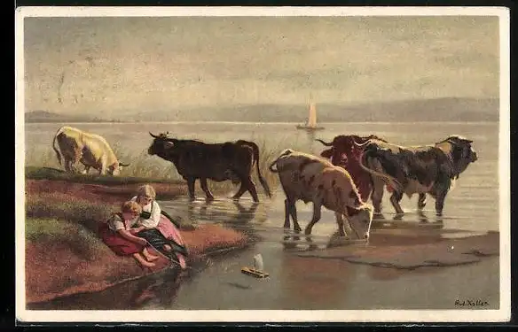 AK Vieh am See von Rudolf Koller