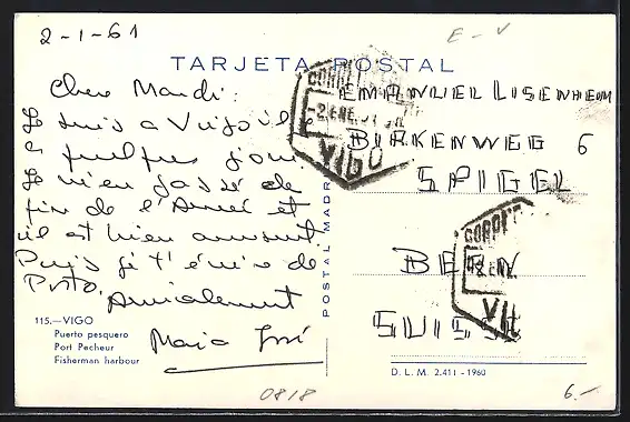 alte Ansichtskarte, gelaufen 1961, Briefmarke entfernt, guter Zustand