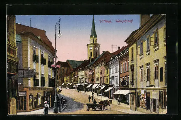 AK Villach, Hauptplatz mit Geschäften
