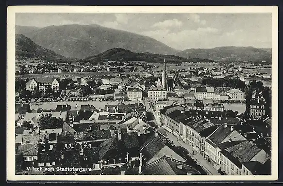 AK Villach, Stadtansicht vom Stadtpfarrturm