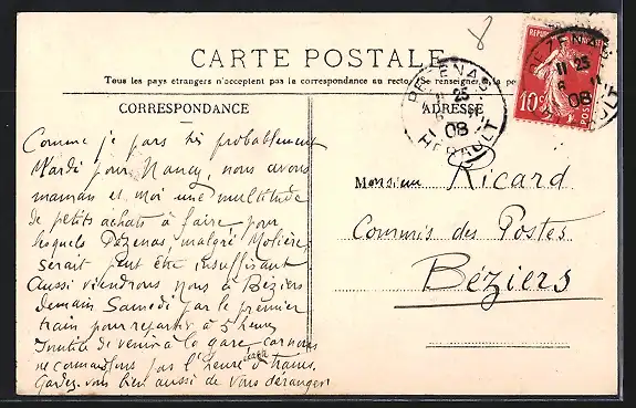 alte Ansichtskarte, gelaufen 1908, Stempelspur, guter Zustand