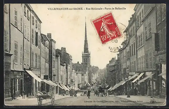 AK Villefranche-sur-Saône, Rue Nationale, Porte de Belleville