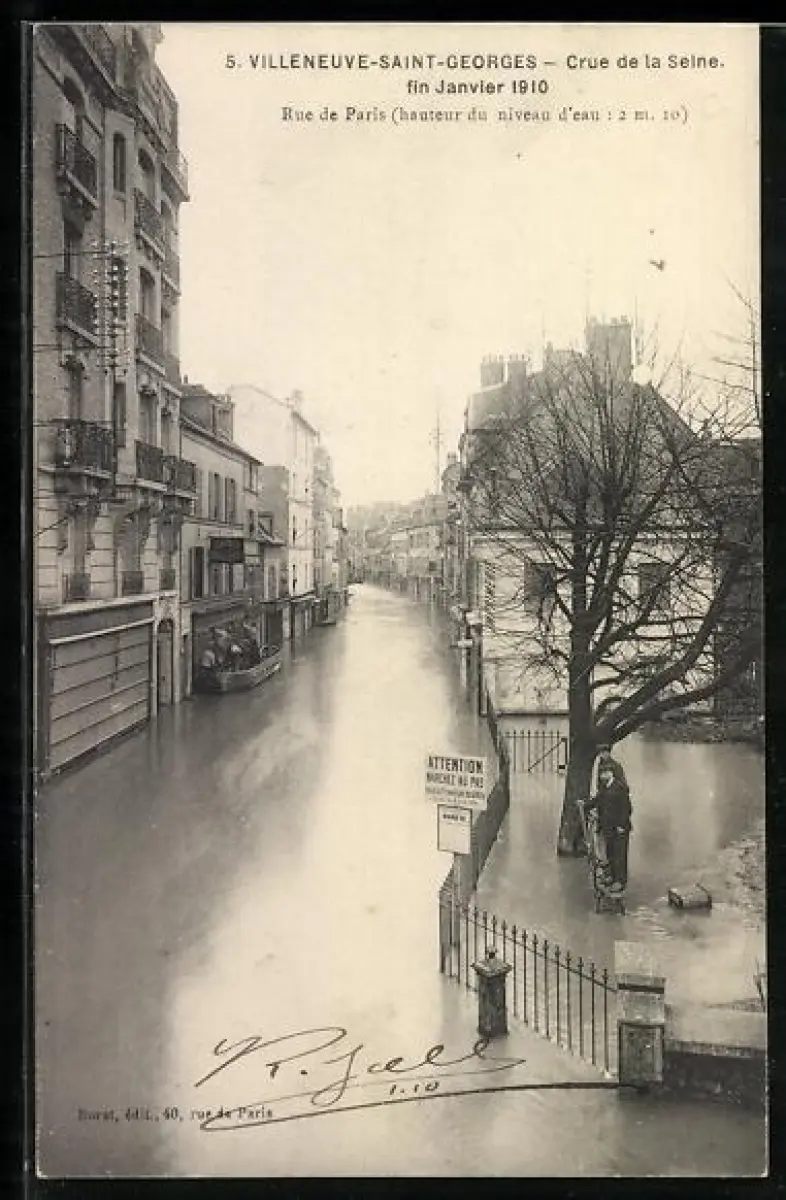 AK Villeneuve-Saint-Georges, Crue de la Seine fin Janvier 1910, Rue de Paris, Hochwasser in der Strasse