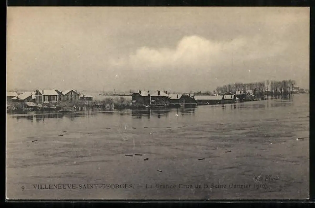 AK Villeneuve-Saint-Georges, La Grande Crue de la Seine, Panorama