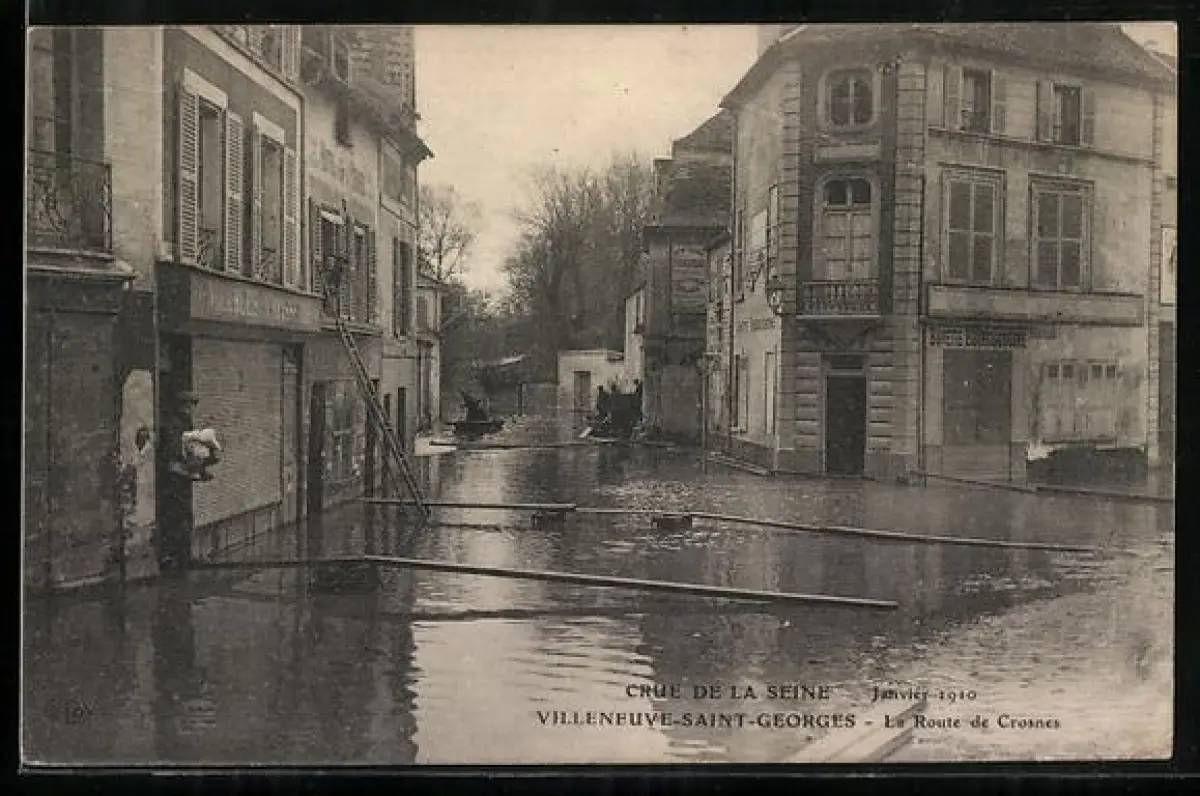 AK Villeneuve-Saint-Georges, La Route de Cornes inondée