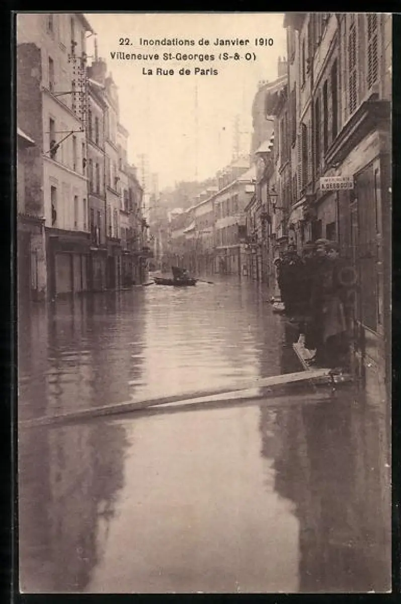 AK Villeneuve-St-Georges, Inondations de Janvier, La Rue de Paris