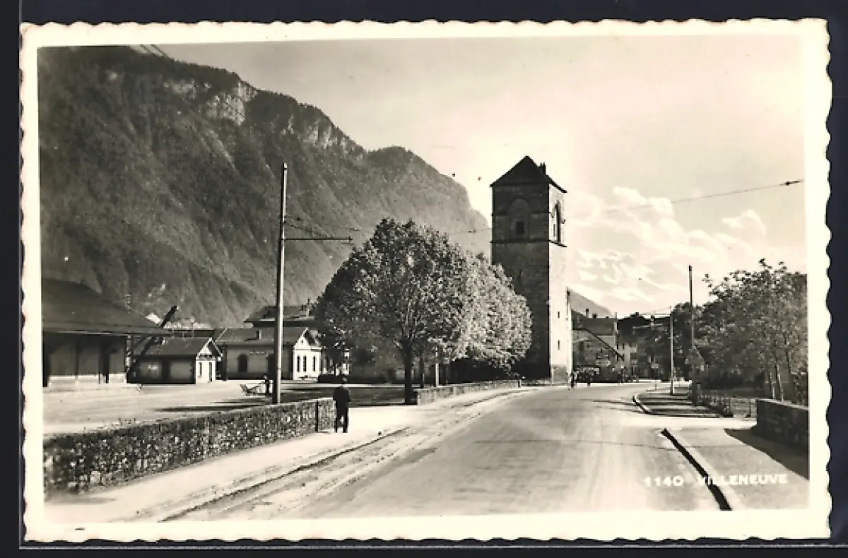 AK Villeneuve /VD, Strassenpartie mit Turm