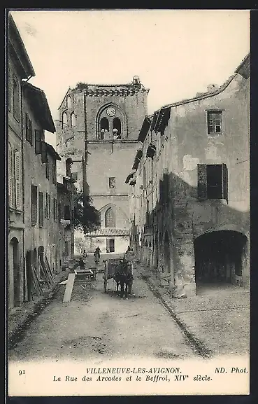 AK Villeneuve-les-Avignon, La Rue des Arcades et le Beffroi, XIV siecle