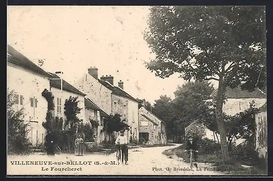 AK Villeneuve-sur-Bellot /S.-&-M., Le Fourcheret, Rue pittoresque avec cyclistes et maisons anciennes