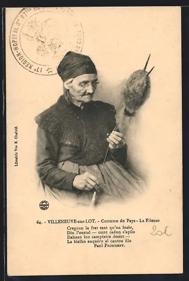 AK Villeneuve-sur-Lot, La Fileuse, Spinnrad mit Spinnerin